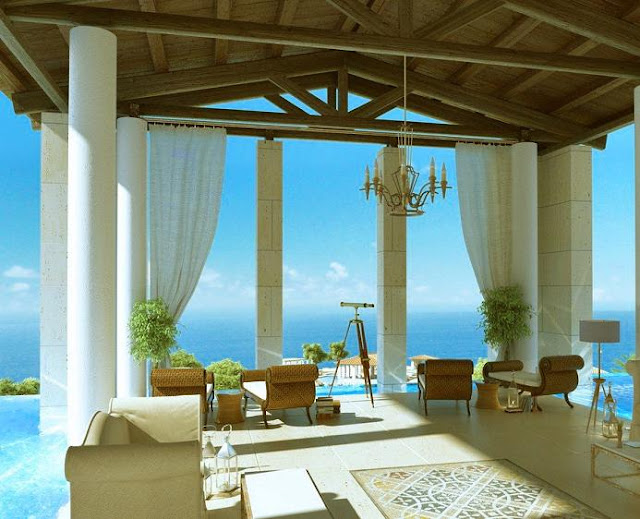 Дизайн интерьера прибрежного коттеджа на берегу ок...